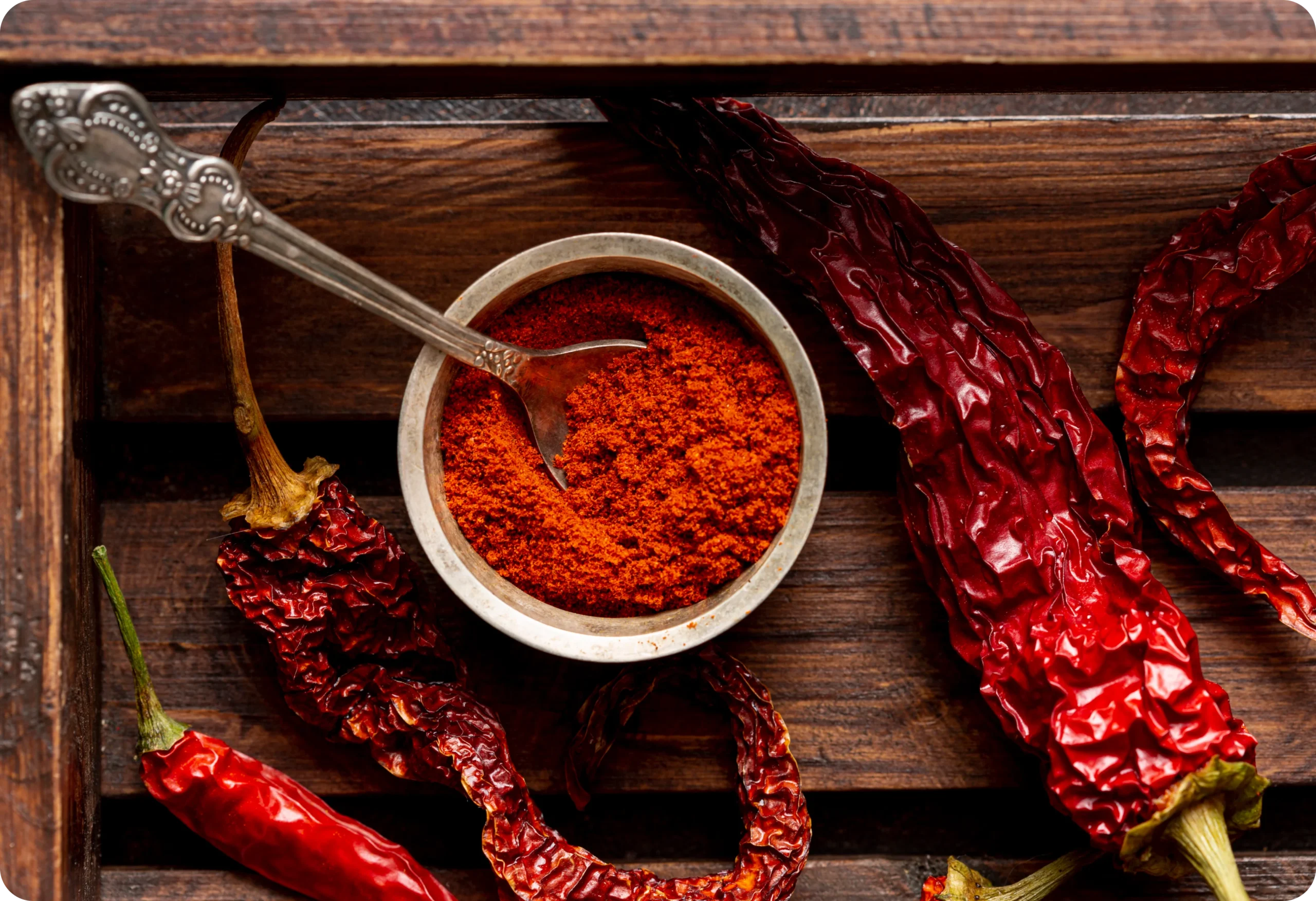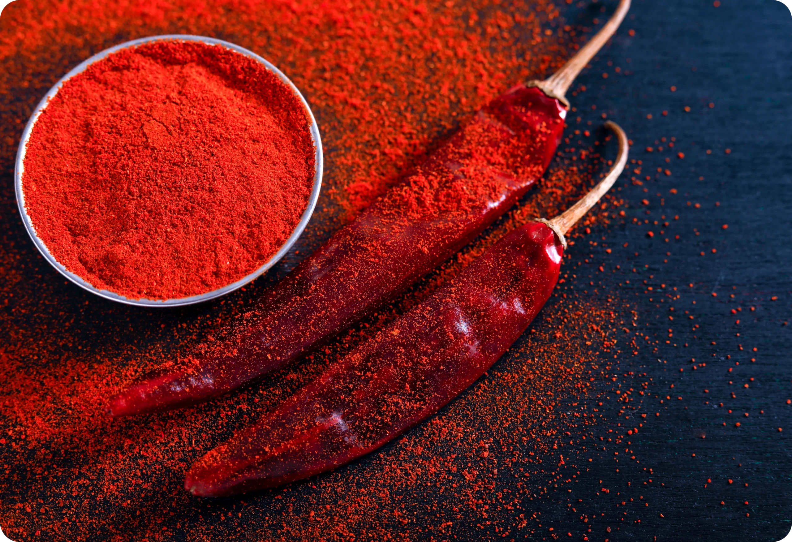 Chili powder is a vibrant red blend of powdered spices. At Hanusri Global Trading, our chili powder contains a touch of cayenne pepper for heat, along with spices such as cumin, garlic powder, oregano, and paprika. This blend is crafted to provide the rich and robust flavors expected in dishes like chili con carne.